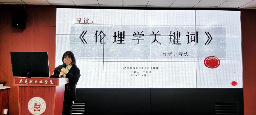 2021年11月2日晚,我院在西学楼1104学术报告厅举办了2020级硕士研究生学术沙龙交流活动。本场活动由2020级马克思主义基本原理专业的杜双鹤,思想政治教育专业的王璐、吴文慧三位同学主讲,我院2021级全体硕士研究生参与此次学术沙龙。