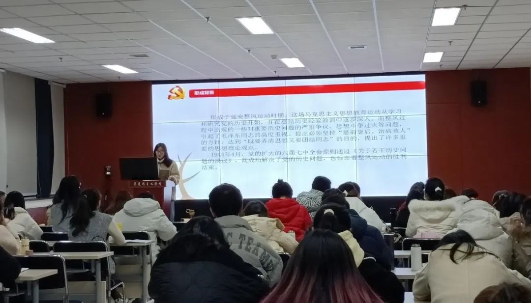 为深入学习党的十九届六中全会精神,推动我院党史学习教育走深走实,12月16日,“红桅杆”思政理论学习社团为我院青年马克思主义者培养工程第一期大学生骨干培训班(以下简称“青马班”)进行宣讲。本次宣讲的主讲人为2020级思想政治教育专业的硕士研究生毛苓萱、刘梅梅和2021级马克思主义基本原理专业的硕士研究生申颖。我院第一期“青马班”全体成员参加了此次活动。