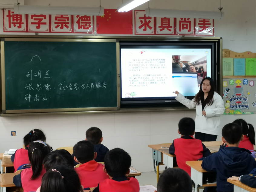 周南以《习近平爷爷心系人民群众》为题,通过讲解习近平总书记在基层鲜为人知的故事,了解以习近平总书记为代表的中国共产党人始终不忘初心,全心全意为人民服务的精神,增强同学们对中国共产党的热爱之情,做合格的社会主义建设者和接班人。