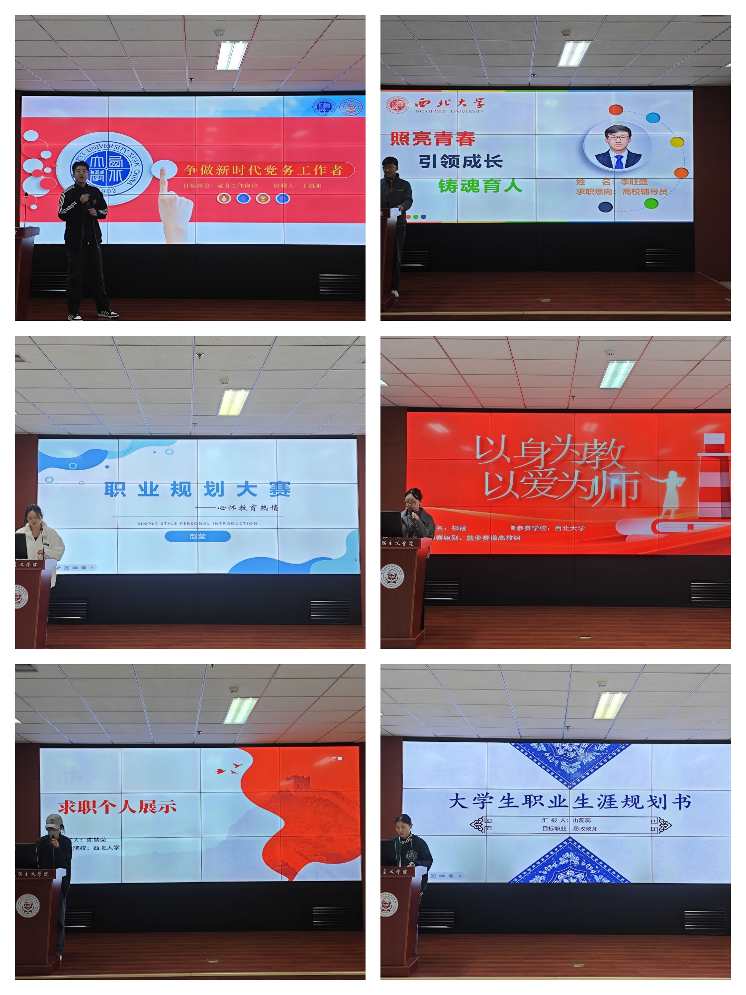 比赛过程中,各位参赛同学通过精彩的 PPT 展示、生动的演讲,向评委们依次阐述了自己的职业目标、自我认知、所获荣誉、实践经历以及职业规划等方面的内容。通过演讲,不仅充分展现了选手们自身扎实的专业知识,而且表明了自身正确的就业观、择业观以及面对未来就业不确定性的灵活应对策略。