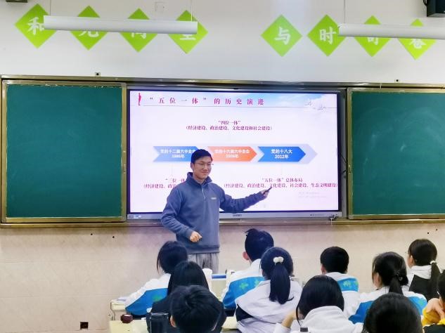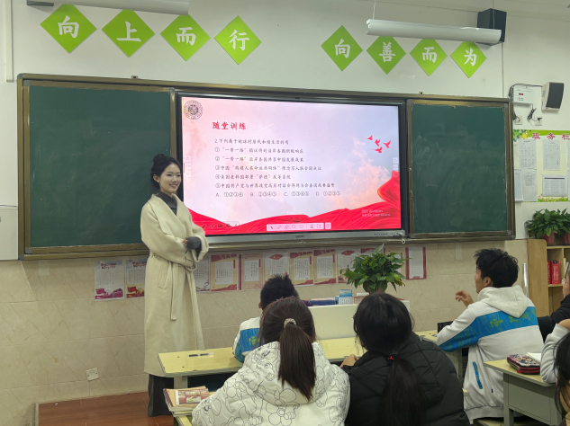 11月29日,我院红桅杆思政理论学习社团在西大附中浐灞中学,以《习近平新时代中国特色社会主义思想学生读本》(初中)为主要内容,为八年级的学生讲授思政课。主讲人为2024级思想政治教育专业的4名硕士研究生。