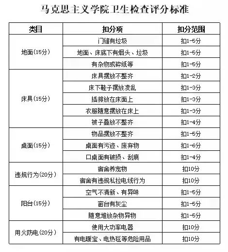 4月17日中午,我院开展卫生安全检查工作,检查标准如下: