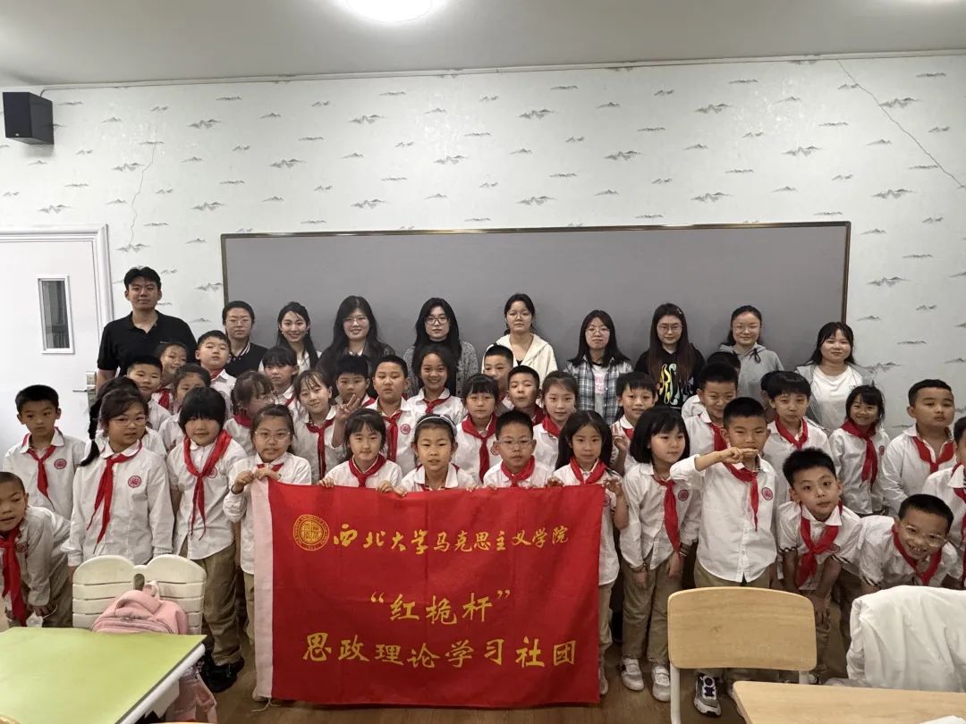 4月21日,我院红桅杆思政理论学习社团在西安市长安区第一小学实验小学,以《习近平新时代中国特色社会主义思想学生读本》(小学低年级)为主要内容,为二年级的小学生讲授思政课。主讲人分别是来自2023级和2024级的马克思主义基本原理、思想政治教育、马克思主义中国化研究与中国近现代史基本问题研究专业的13位硕士研究生。