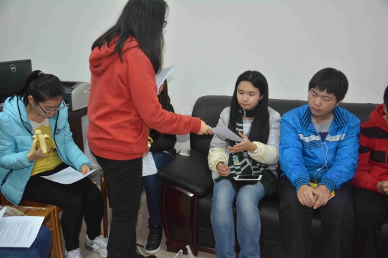陈丹阳和郝瑜瑜让部员们自由分组,共同讨论针对支教主题的看法,部员们都积极参与,互相发表自己的见解。通过这样的交流形式,使得部员们不仅加深了对讨论主题的认识,并加强了自己的沟通表达能力,对于促进部员间的关系也具有很大的作用。