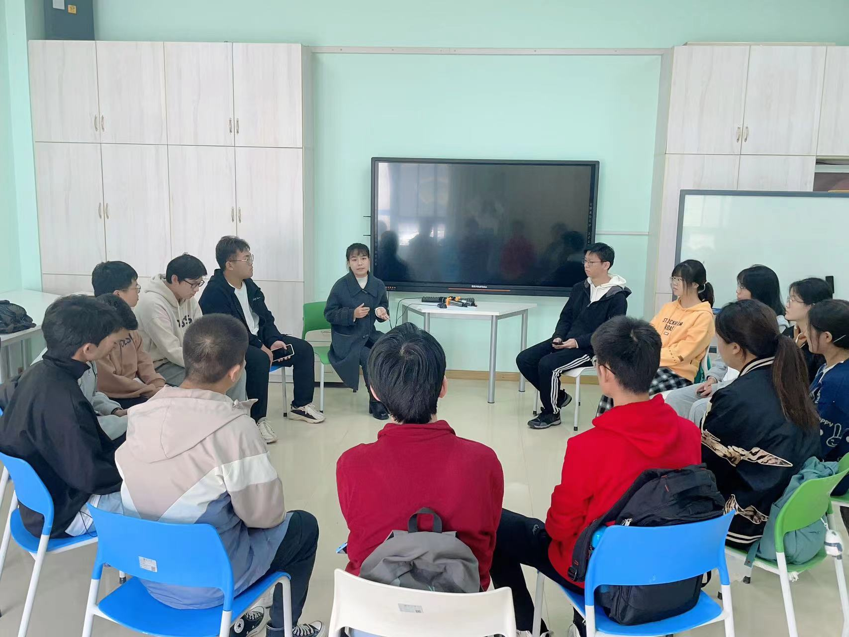 10月26日上午,我院开展“思政课教师进学生社区”专题辅导沙龙活动,活动由我院青年教师王婷主持并指导。部分来自不同专业的2022级本科生及“一站式”学生社区19号楼第二党支部的部分同学参加。